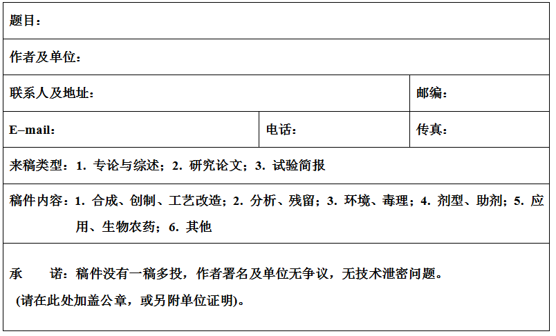 《現(xiàn)代農(nóng)藥》投稿附表